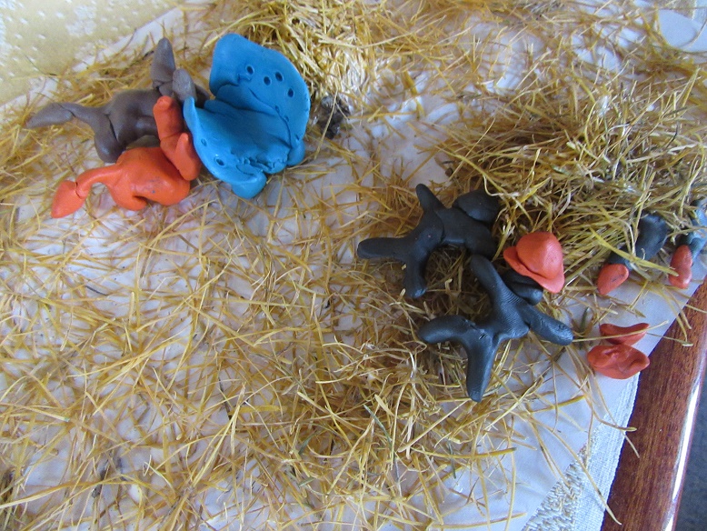 Бумага А 4, пожелтевшая хвоя лиственницы, пластилин.