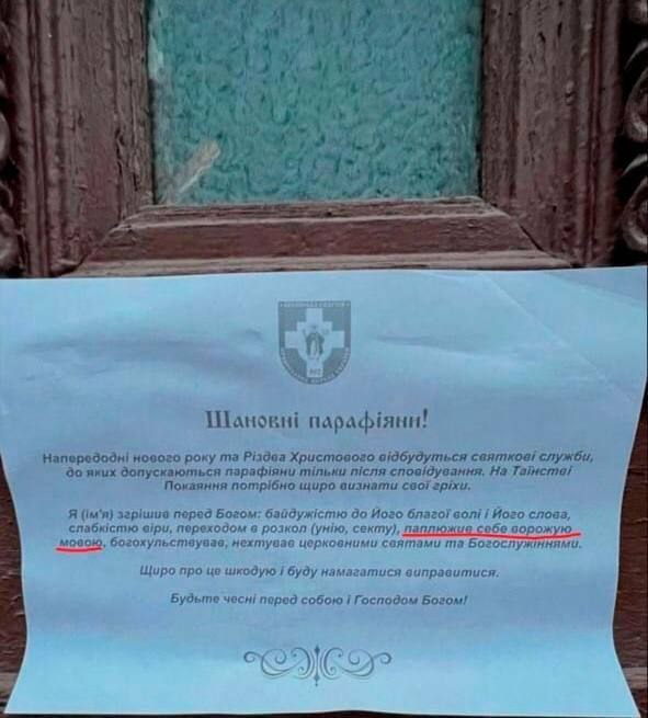 В ПЦУ прихожанам предлагают покаяться в «осквернении себя вражеским языком»