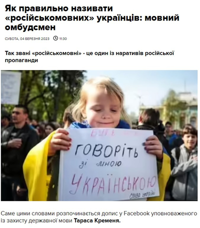 Сегодня украинский т.н. "языковой омбудсмен" Тарас Кремень, чиновник, персонально ответственный за уничтожение всего русского, заявляет, что не только русских – даже русскоязычных на Украине нет.