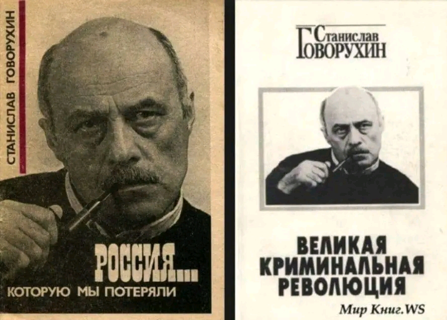 "Ко дню России. В 1991 году вышла книга, которая слева. В 1992 она была экранизована и показана на всех экранах уже бывшего СССР. Россия, которую мы потеряли - ушло в народ, как цитата, которую лично я часто использую. Говорухин снял кино на хорошей пленке, на хороший бюджет и при гостелерадиоподдержке. Посмотреть теперь - героиновый бред полуграмотного советского интеллигента эпохи застоя. Но тогда это была атомная бомба под СССР. ЧТОБЫ НЕ ЖАЛКО БЫЛО ТЕРЯТЬ. Когда СССР потеряли, Говорухин остался без тоталитарного гостелерадио, без киностудий и партейной крыши. Растерял весь толстый слой советской элитности. И прозрел. Поэтому в 1994 году вышла книжка которая справа. Название снова стало цитатой, потому, что Говорухин был великий художник. Но на кинцо денег никто не дал. Пришлось снимать бытовой камерой, на кассету VHS. Фильм никто не пиарил, не показывал по всем каналам, а Говорухин был отлучен от сосцов Кремля, потому что Кремль состоял из майдаунов. Для них Говорухин был красно-коричневый ватник. А красно-коричневые ватники, трогательно и героически защищавшие Белый дом в 1993, считали Говорухина либерастом-ельциноидом. И ГОВОРУХИН ГРУСТНО СМОТРЕЛ НА ГОРЯЩИЙ БЕЛЫЙ ДОМ. Одумавшись, Говорухин стал пафосным ватником. Но было поздно. Есть еще один великий художник - Никита Михалков. Он тоже переобувался, но по-умному. Снимал только то, что слева, а то, что справа озвучил только тогда, когда это было озвучено хозяином Кремля. Почему, объяснил герой Михалкова: Или со мной, или против меня. Ой, есть еще один путь: отойти в сторонку, многозначительно промолчать и поглядеть, чем всё кончится. САМЫЙ РУССКИЙ ИНТЕЛЛИГЕНТСКИЙ ФОКУС. И вот, при чем тут день России. Царством, империей, союзом или федерацией - Россия величина постоянная. Теряли Россию только русские интеллигенты, которым такая тяжесть неподъёмна. Зато они умели доносить свой плач до народа. Поэтому историю России мы знаем только в их искаженном от слез истеричном изложении. Оно не бодрит и мы давно потеряли бы Россию навсегда. Потеряли бы, если бы не, кто? РУССКИЕ АППАРАТЧИКИ. Хотите бейте, хотите нет, но только казенные люди хранили Россию, а затем и собирали ея в прежней форме и еще большей великой славе. Русские интеллигенты отходили в сторонку, чтобы молча следить, чем все кончится, а Царство после Смуты собрал аппарат Ивана Грозного, Империю - приказные люди Тишайшего, СССР - царские военные и статские чиновники, а РФ - партийные аппаратчики. Обитатели кабинетов, которых вы так ненавидите и есть святые достоевские сеятели и хранители. Они не умеют писать и говорить, поэтому история России, ее тайна, непостижимы. ЖИВИТЕ ТЕПЕРЬ С ЭТИМ."