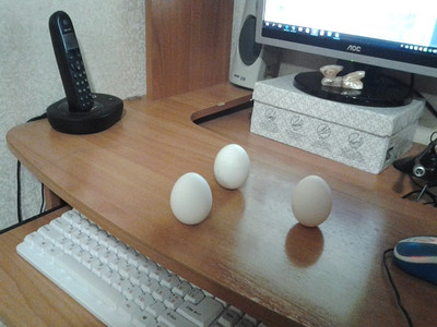 Инструкция по постановке) Это просто. Надо достать яйцо из холодильника и чуток погреть его в руках, совсем чуток. Затем, поставить его двумя руками вниз попкой на гладкую поверхность и попытаться уравновесить, придерживая с боков и одним пальцем нежно поправляя ему макушечку. Потом, когда оно ВСТАНЕТ (довольно быстро, без особых мучений), то можно испытать (как я в первый раз) лёгкую такую оторопь и, чтобы даже волосики зашевелились от прикосновения к тайнам Вселенной, как будто мистика какая-то рядом прошелестела. ) А я уже ничо так. Бодренько так в этот раз принесла, покачала - и отпустила. Стояли два дня пока нечаянно не смахнула.)