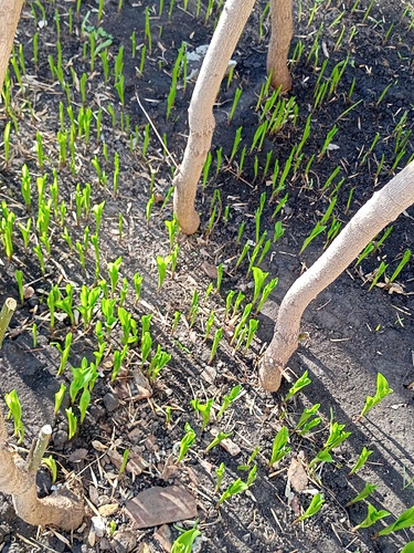 | Это мой газон у моего подъезда и я за ним ухаживаю. Это наши давние друзья, выпустили свои дудочки, ландыши. Как-раз к маю цветы появятся.)