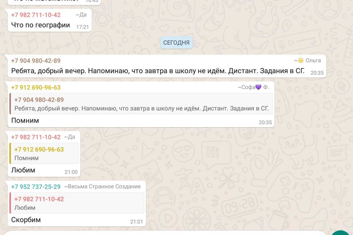 | Шестикласснички подросли. Куда делся трогательный наив и святая вера словам "учичельницы"? Научились ехидству в адрес школы и священного козла образования. Ну а что тут скажешь? Самым большим содержанием образовательного процесса до сих пор являются образцы и навыки лицемерия.) Ну вот, выдают результаты и навыки.))) Завтра уроки отменили из-за экзаменов старшаков, школа занята. Средним не надо идти в школу. Обменялись в своей группе вацапа впечатлениями)))