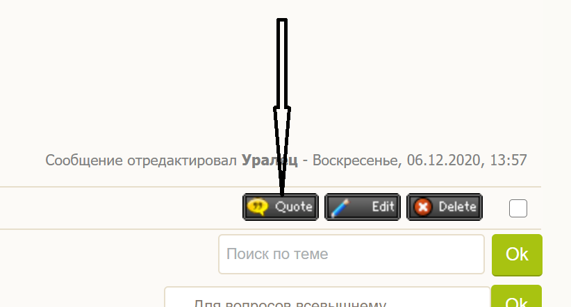Затем смотрите в правую часть его комментария и находите ЖЁЛТЕНЬКУЮ кнопочку цитирования, вот эту, первую из трёх