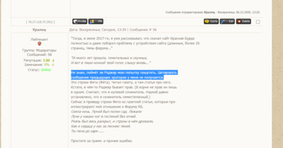 | Павел, внимательно следите за руками-кнопками!?  Как цитировать? Выделяете левой кнопкой мыши текст полюбившегося оратора - вот так...