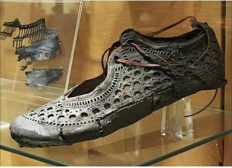 А как вам такая жудко поношенная римская туфля? Найдена при раскопках римского военного лагеря. 1 век до н.э. Мне в ней нравится дырчатый узор)