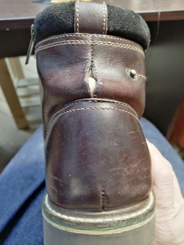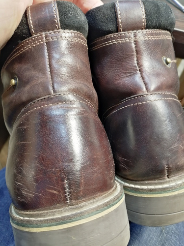 Вот такие ремонтировала. Задник крепился к подошве обычным швом. Оторвался быстро.