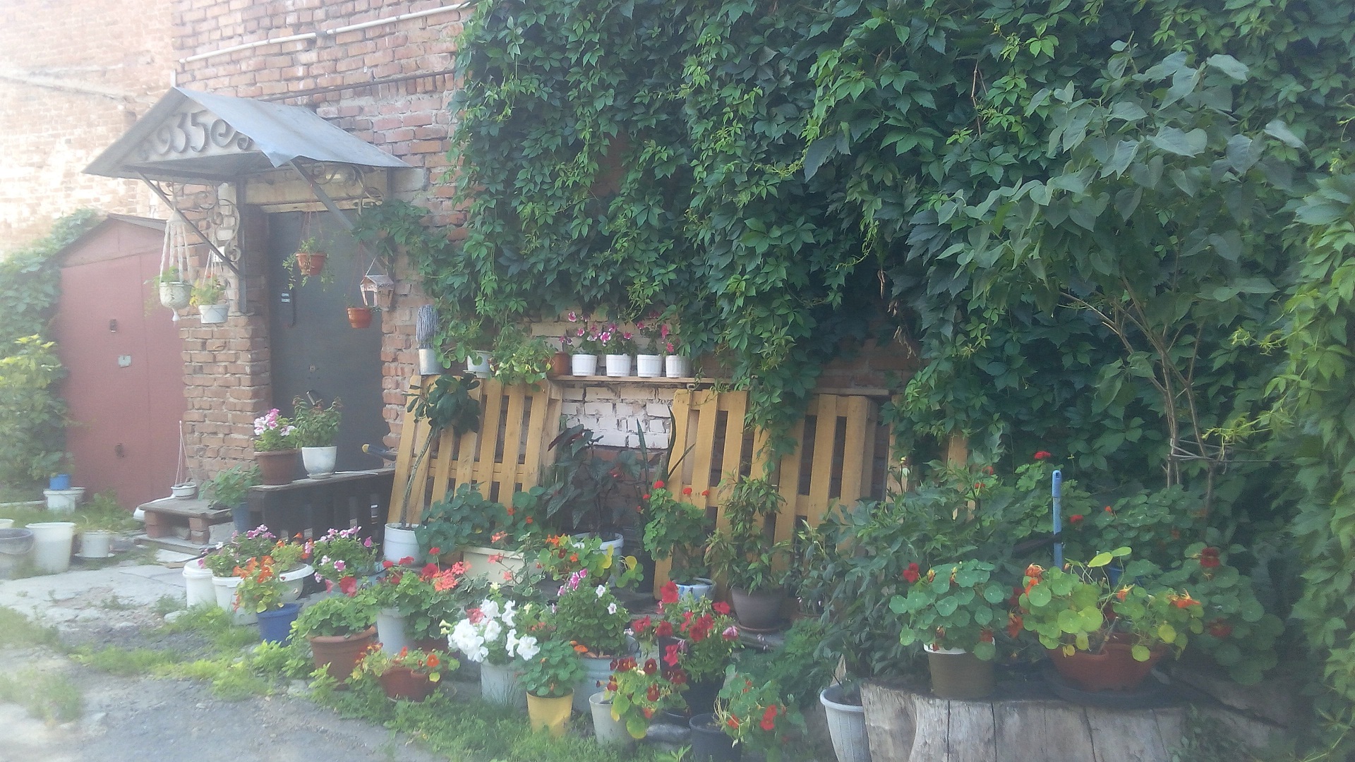 Но летом - просто фантастика! Это вы ещё и садовники-цветоводы!? Красота! И плющ, и горшечные, и пенёк оформлен, и газон. Чудесааа!