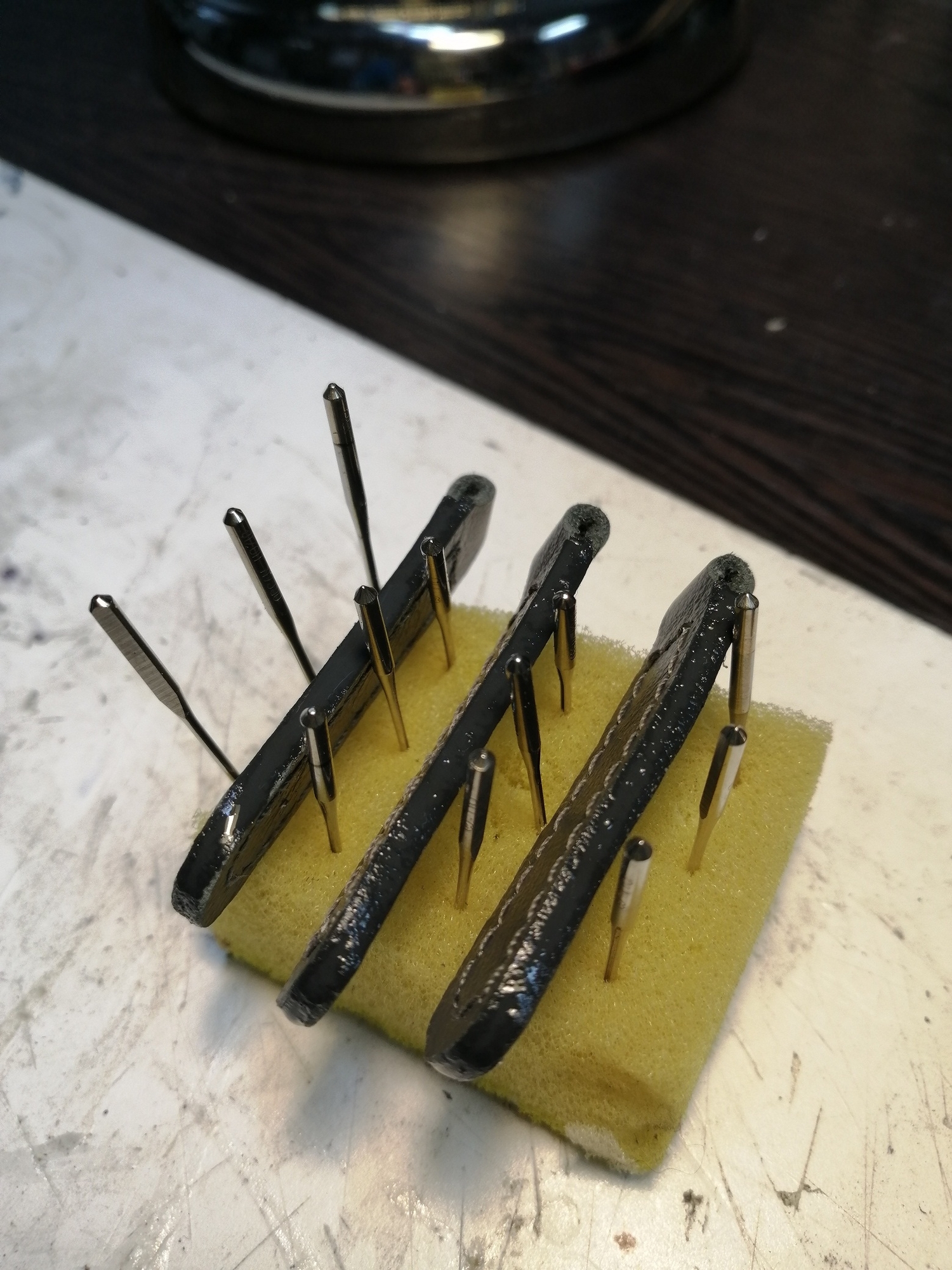 Далее сам урез. Шкурю с помощью гравера. Наношу специальный клей для кожи.