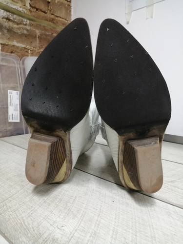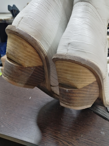 На рыжих замшевых кроссовках уже установила твердый задник. Приготовила пятачок из кожи. На белые казачки профилактику поставлю. Каблук у них интересный. Ну, а бирюзовым нужен новый запятник. Сделаю - покажу