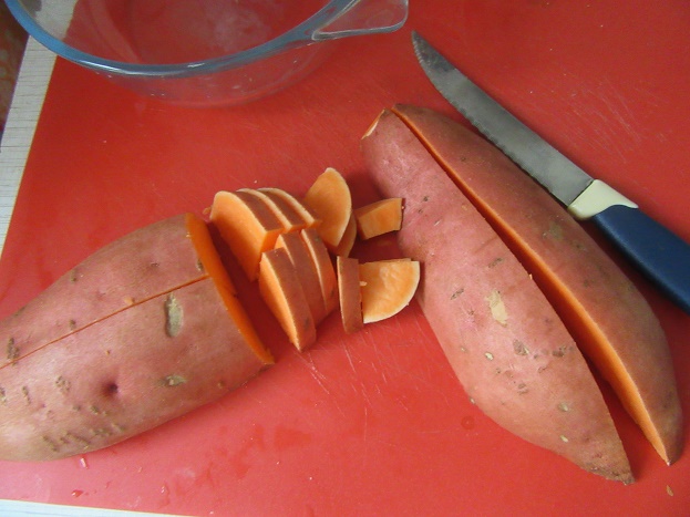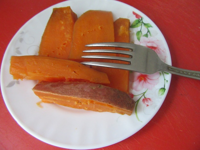 | В Магните в продаже появился заморское чудо - батат. Попробовали. Понравилось. Та же картошечка, только чуток сладковатая. Ну и красиво так. Оранжевенько)
