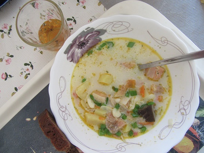 | Цитата lamoisha (  ) Мы же по-деревенски привыкли. Мама-бабушка говаривали - хороший суп, он вам не похлёбка. В нём ложка должна стоять! У меня другая концепция: первое отдельно, а второе отдельно (как мухи и котлеты). Суп - жирный бульон прозрачный с зеленью. А на второе шмат мяса или рыбы. А всякие мутные мешанины на грани консистенции каши - это не суп, а варево. Бульон заставляет выделяться желудочному соку и способствует переваривания второго.