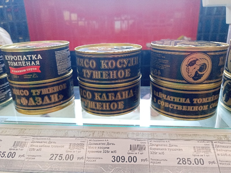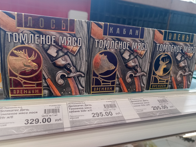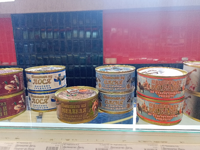 | Сейчас я в гостях у мамули, в Шадринске. Такую вот консервную "дичь" на родине научились стряпать. Говорят, один местный предприниматель со страусиной фермой и охотхозяйством производит для земляков. Может они все из "одной дерибасовской", но как впечатлительно выглядят!))