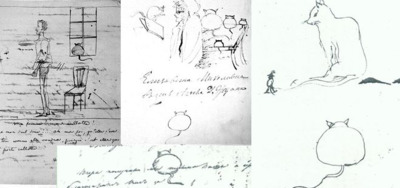 | Котики не сегодня бросились спасать наш мир. Они, оказывается, спасают его уже давно и старательно. И, по-моему, их старания не пропадают втуне. Что-то прибавляется хорошего и доброго на этом свете от того, что в нём обитают котики. Они, как оказалось. плотно спасали АлексанСергеича Пушкина. Оказывается, кроме женских ножек и портретов друзей он больше всего рисовал на полях своих рукописей... котиков! И это кроме кота учёного. Просто по рукописям нашего всего и везде разбросаны котики, как выяснили аналитики-пушкиноведы. Особенно много котиковых мяфочных попов, с ушками.)