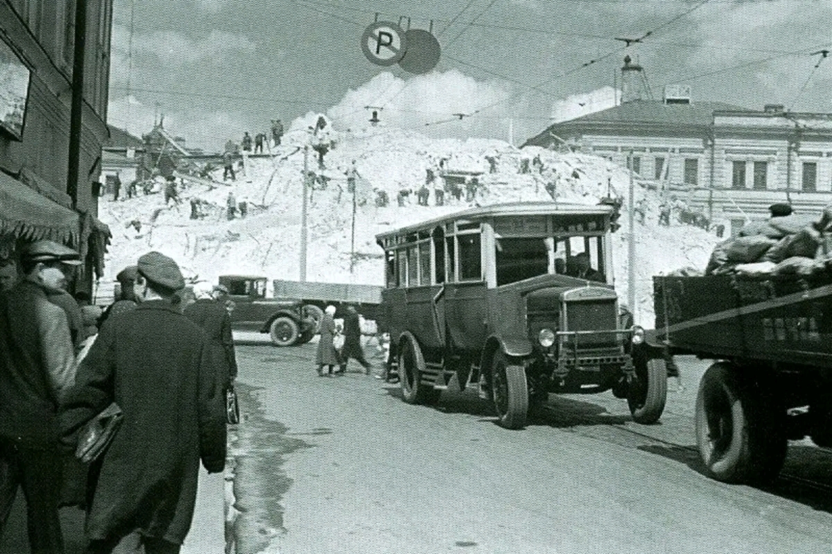 | А это фото зарегистрировало преступление против истории Москвы. Снос брюсовской Сухаревой башни. Слёзы... Столько снесено тайн, легенд и просто исторических свидетельств по надуманному поводу и отсутствующей причине. И архитекторы были против, и предлагали варианты объезда и обходы магистралями. Но победило самодурство((