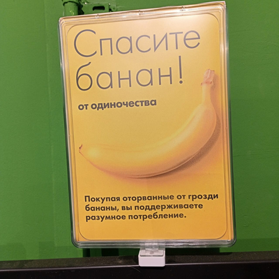 Вчера столкнулась с юмором, добрым и спасительным. Удивительным, нехарактерным для торговых сетей. Вчерашнее моё фото из ближней Ленты. А вы спасли хоть один банан от одиночества?))) Я спасла целых два! Хотя никогда их не любитель. Но спасатель! В этом моя миссия 😃