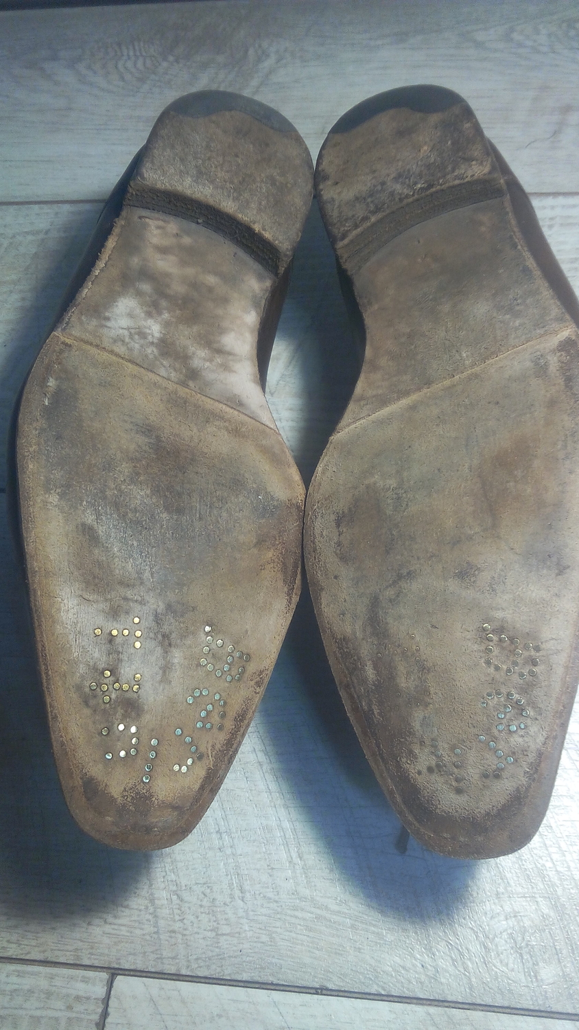 | Цитата lamoisha (  ) фото мужского ботинка, обтачиваемого нежными женскими руками  Отлично получились!! Гвоздик "золотой" из набойки выпал. Оставила как трофей))